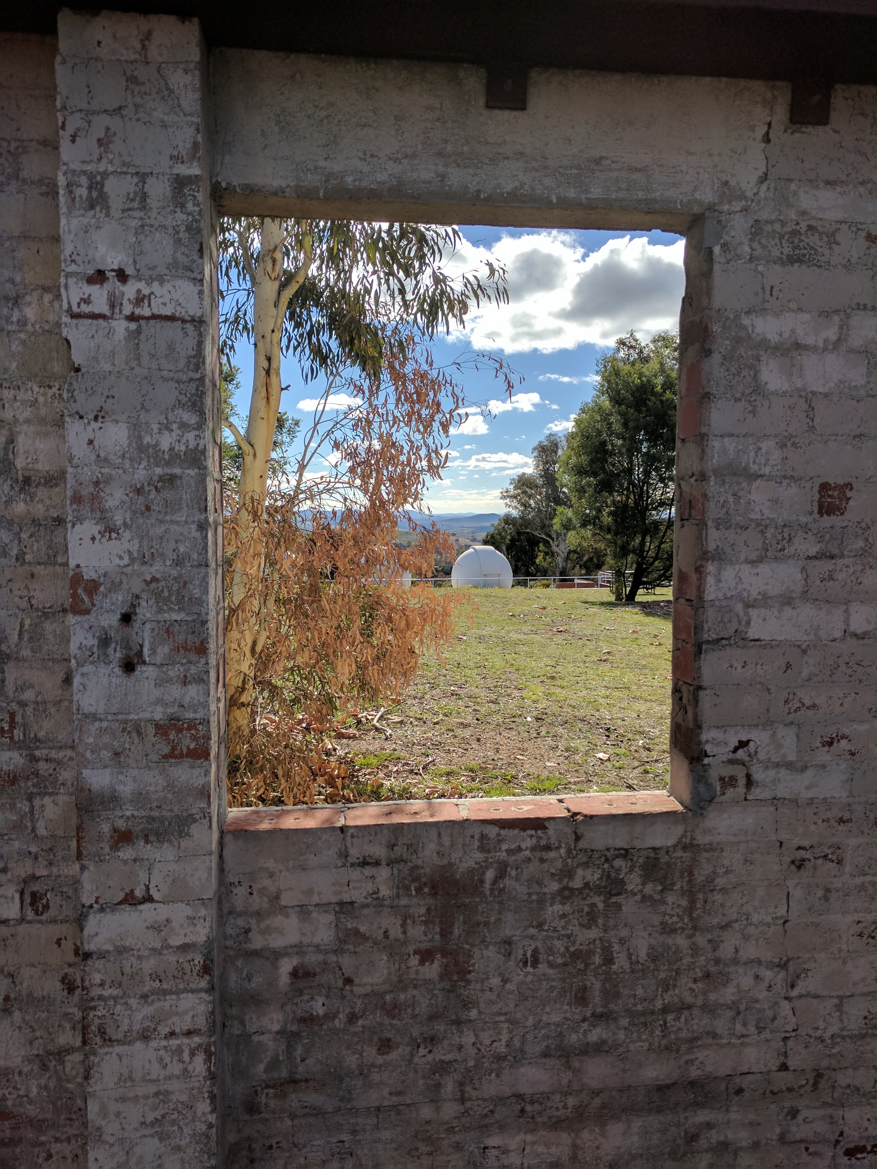 - window, view, telescope, ruin, Stromlo, building, Australia